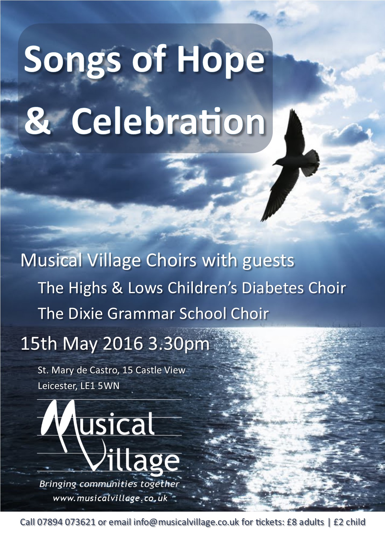 100% of money raised from ticket sales will go to our chosen charities; Age UK (Leicester/shire), Joe Humphries Memorial Trust and Vista.
